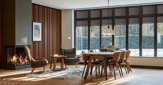Smart gesteuerter Sonnenschutz kühlt nicht nur die Wohnung im Sommer, sondern sorgt auch für behagliche Temperaturen in der kalten Jahreszeit. Wie das Smart Home im Winter Heizkosten spart, ohne die Heizung selbst zu steuern,