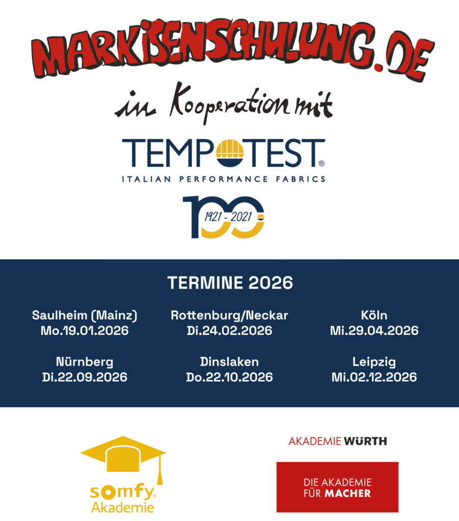 Top geschult mit Markisenschulung.de – PARÀ TEMPOTEST, SOMFY und WÜRTH